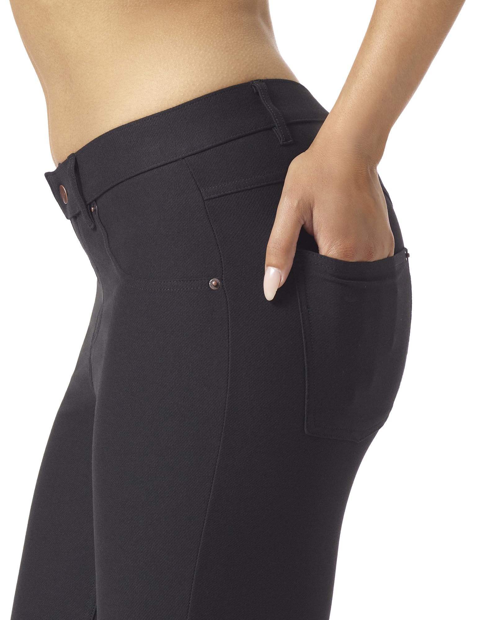 HUE Women's Essential Denim Capri Leggings with Pockets and Side Slits, Comfortable Pull On Pants