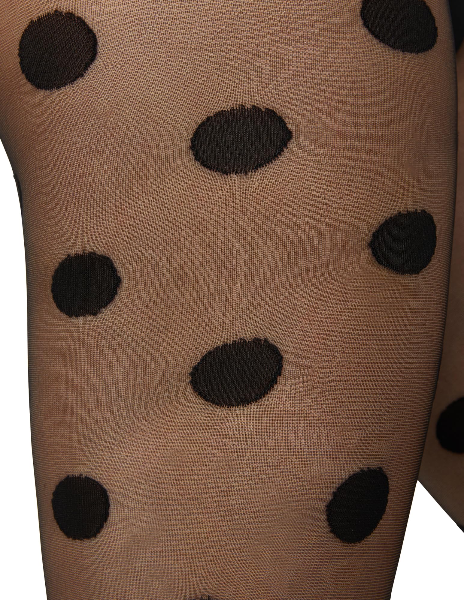 - Sheer leg with bold oversized dot pattern