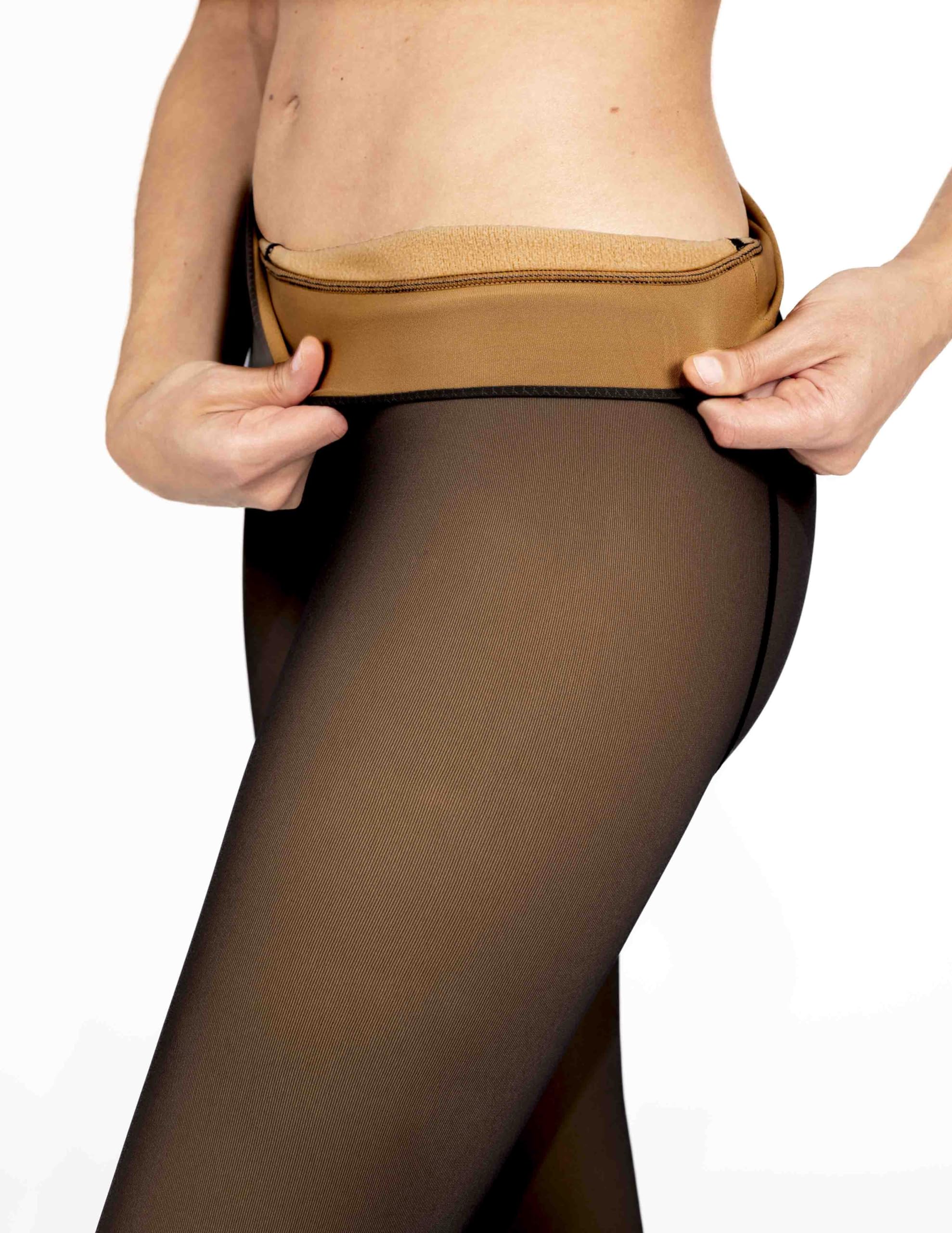 - Skin Undertone: These translucent fleece tights are fashionable. The winter tights look like a sheer tight from the outside but are filled with warm fleece on the inside. You can wear these fake translucent tights in autumn and winter, not only to show your figure, but also to keep you warm.